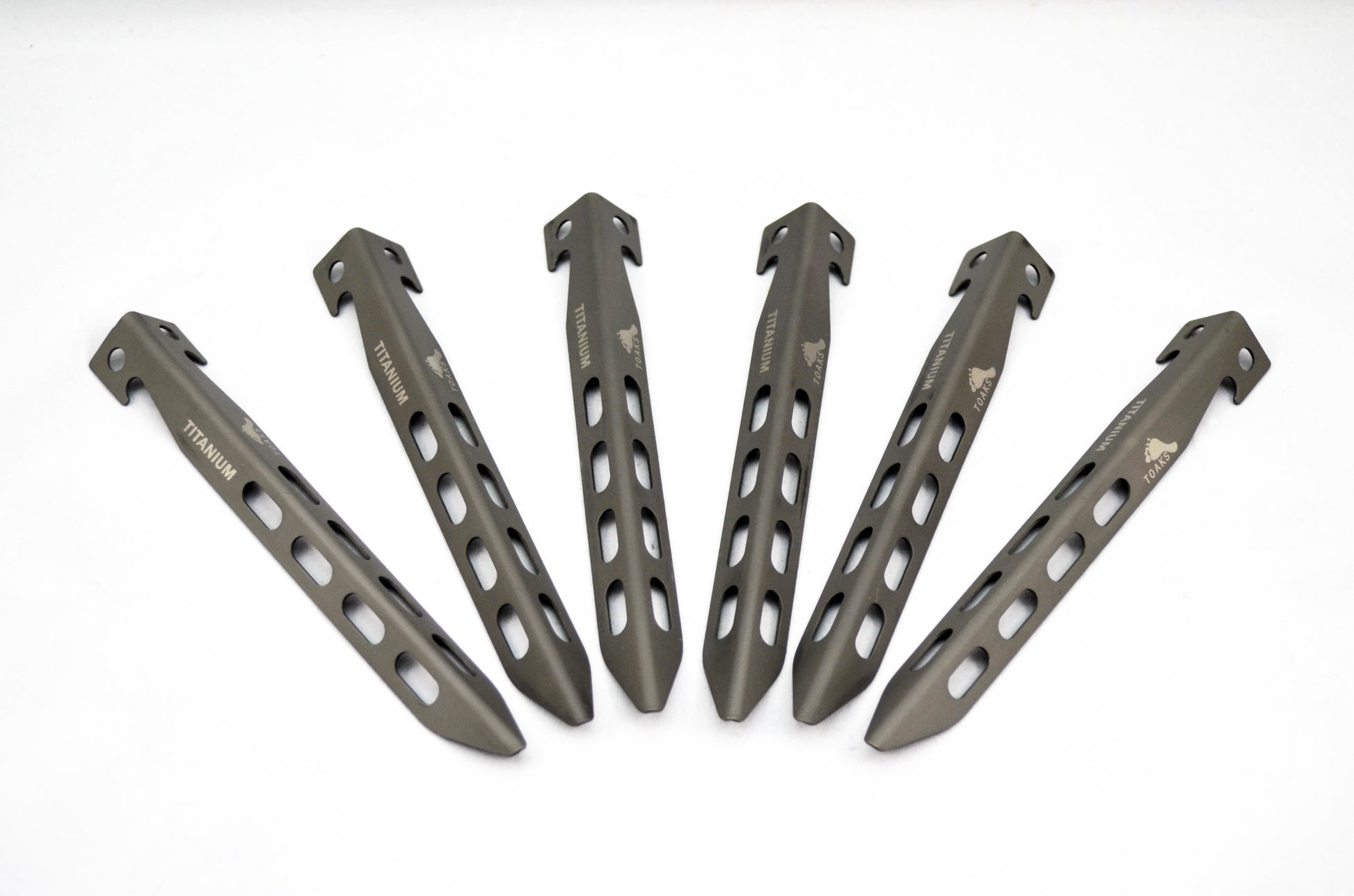 | Notes: | 1. TOAKS Titanium V-shaped Peg is a multi-season tent peg that has excellent hold in both soil and snow. 2. Every 6 pegs comes with a pouch. |