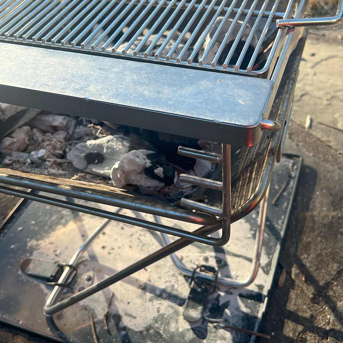 Our fireplaces and grills are designed to work as a complete outdoor cooking system. Each component packs flat for easy transport, whether you're heading out car camping or grilling in the backyard. The modular setup lets you quickly combine the fireplace and grill for cooking, heating, or just enjoying the fire. The grill height is adjustable for precise heat control, and the grill net can be removed—perfect for barbecuing meat on a stick or switching up your cooking style.
